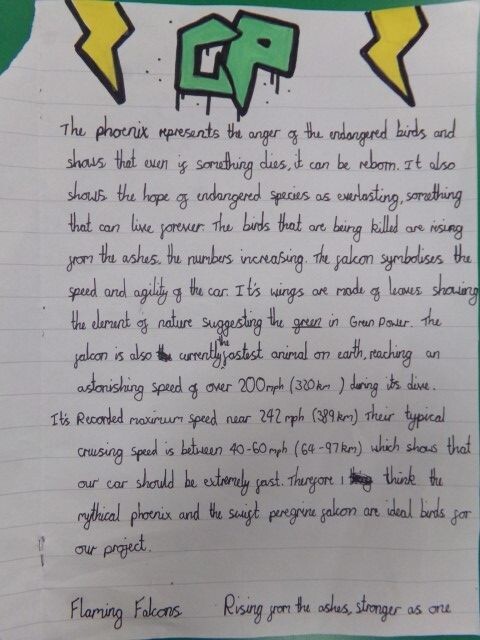 Today, we started to review our sponsorship letters and car designs. Last week, we all got designated a company which we had to persuade to help us. We wrote to TAMIA, Wickes, Surrey Signs, Love Your Logo, MACS Autocare and Blue Peter. We were very proud of our letters and we do hope that some of the companies will sponsor us.