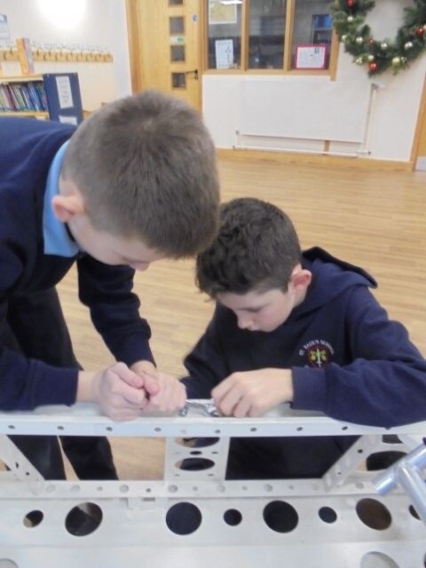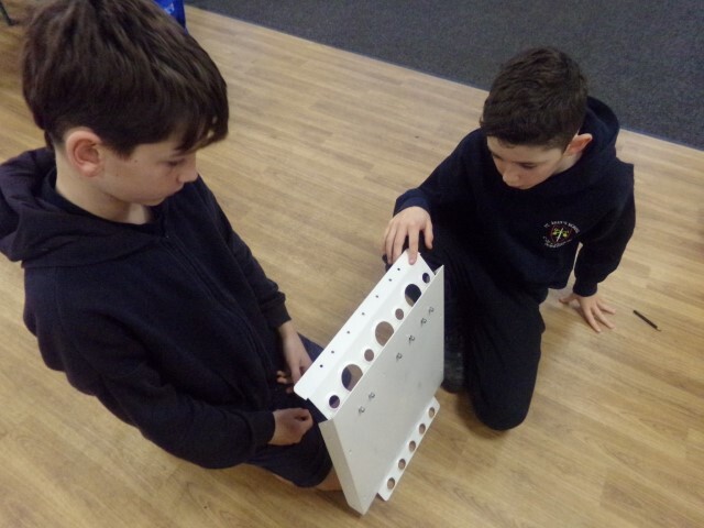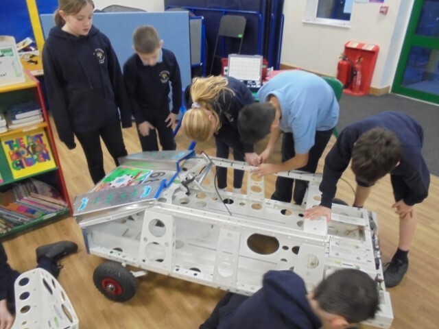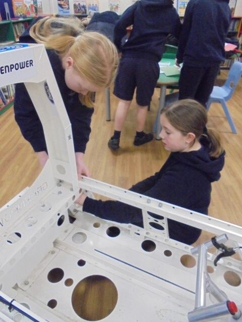 We discussed why aluminium was really important. It is light, strong and durable. We saw that the bodywork has lots of holes and we worked that the holes, not only made the body work lighter but also made it stronger. We used a bit of paper to prove this fact. A straight piece of paper falls and is weak whereas a concertinaed piece of paper is much strong and can hold a heavy load without crumpling.