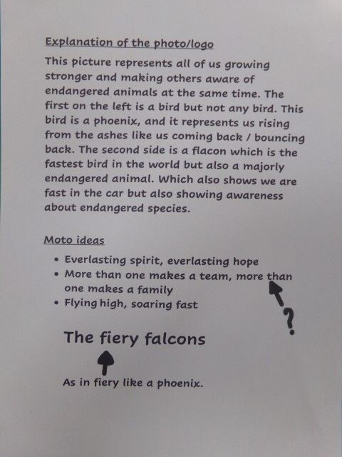 This week, we started this session finalising our logo, motto, team name and car name. We finally agreed on: